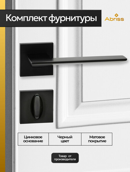 Готовый комплект для межкомнатных и входных дверей с дополнительной фиксацией: Ручка дверная ABRISS R21.027 MBP (Чёрный матовый) + дверной поворотник / фиксатор ABRISS BK 2105 MBP (Чёрный матовый). Ручка дверная ABRISS R21.027 MBP (Чёрный матовый) + дверной поворотник / фиксатор ABRISS BK 2105 MBP (Чёрный матовый)станут готовым комплектом для дверей в вашем доме. Комплект подходит для любых типов дверей. дверной защелкой/замком НЕ комплектуется! Можете рассмотреть вариант: VETTORE WC 410 B-S Kevlar MBP. Материал изготовления: алюминиевый и цинковый сплав. Форма основания ручки и фиксатора: квадрат Материал основания: цинковый сплав. Рекомендованная толщина двери: от 35 - до 45 мм. Длина соединительного квадрата: 110 мм. Стяжные винты предназначены для установки дверных ручек на входные металлические двери для дополнительной фиксации. Для установки комплекта на межкомнатную дверь достаточно использовать саморезы. Комплект состоит из 2 единиц, один комплект предназначен на одно дверное полотно. Комплектуется со всеми замками и поворотниками/фиксаторами из нашего ассортимента VETTORE и ABRISS. Комплектация: две ручки на одно дверное полотно, соединительный квадрат (8 мм * 8мм*110 мм), монтажный комплект, фиксатор две штуки на одно дверное полотно, соединительный квадрат (8 мм * 8мм*80 мм). Цвет комплекта: Чёрный матовый. Также в нашем ассортименте вы можете найти дверные ручки, межкомнатные механизмы, защелки, фиксаторы, декоративные накладки и другую дверную фурнитуру.