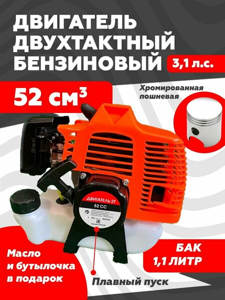 Двигатель 2-х тактный для мотобура/ бензокосы 3.1 лс 52см3 с маслом в копмлекте