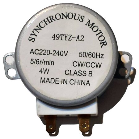Двигатель тарелки СВЧ 4W 5/6 об/мин 220V h12мм - синхронные двигатель малой мощности. Компактное устройство с малым количеством оборотов и с большим усилием на выходе, поворачивающим поддон, нагруженный продуктами в течении продолжительного времени. Мотор вращения поворотного стола (поддона) СВЧ-печи универсальный 49TYZ-A2 AC220-240V 50/60Hz 5-6 r/min 4W Высота 12мм