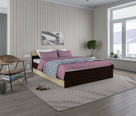 Двуспальная кровать столплит Уют СБ-2747/1. Н с основанием, без матраса, Венге/Дуб Паллада 164х70х204 см