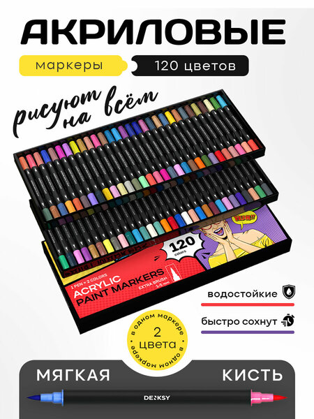 Двусторонние акриловые маркеры DENKSY: 120 ярких цветов и 60 маркеров в комплекте Разнообразие цветов Двусторонние акриловые маркеры DENKSY предлагают 120 ярких и насыщенных цветов, которые помогут вам выразить свою творческую индивидуальность и создать уникальные рисунки. Удобство использования В комплекте вы получаете 60 маркеров, что позволяет вам иметь под рукой все необходимые цвета для реализации своих идей. Двусторонняя конструкция маркеров обеспечивает удобство использования и позволяет рисовать как тонкими линиями, так и широкими мазками. Качественные материалы Акриловые маркеры DENKSY изготовлены из качественных материалов, что гарантирует их долговечность и устойчивость к стиранию. Выбирая двусторонние акриловые маркеры DENKSY, вы получаете 120 ярких цветов, 60 удобных маркеров в комплекте и качественные материалы, которые позволят вам воплотить свои творческие идеи в жизнь.
