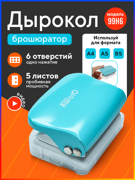 Дырокол TAYMLUX 99H6 - это эффективный канцелярский инструмент для быстрой и удобной подготовки брошюр, каталогов, красивых книг, блокнотов на спиральном переплете, отличное решение для студента или офисного работника. Наш ручной брошюратор имеет металлический корпус, который является износостойким, долговечным и может использоваться в течение длительного времени. Все режущие элементы у него закрыты корпусом. Функциональный брошюровщик обеспечивает идеально ровное расположение листов благодаря специальной линейке и стоп точке, а широкая спираль и круглая форма отверстий обеспечивают равномерное распределение давления для предотвращения деформации бумаги. После использования, этот переплетчик удобно очистить от оставшейся бумаги, он имеет контейнер для мусора. Этот миниатюрный дырокол для бумаги на 6 отверстий подходит для стандартных форматов А4, А5, и B5, и может пробивать 5 листов за раз, картонную бумагу, ламинированные листы, главное, чтобы их толщина не была более 3 мм. Работать можно с любым форматом, который вам необходим, единственное условие - необходимо рассчитать количество отверстий. Небольшие размеры позволяют хранить данный дырокол а4 в ящике или шкафчике, а также он лёгкий, поэтому удобно брать с собой в поездки или на встречи. Наш дырокол для листов не занимает много места и всегда находится под рукой. Представленный брошюратор а4 прост в использовании и отлично подходит для домашнего применения, например для изготовления детских пособий и альбомов. Студенты используют для создания учебных материалов, конспектов, рефератов. Дети так же с лёгкостью осваивают дырокол канцелярский и используют в своём творчестве. Этот милый и эстетичный спироплетный дырокол будет отличным подарком школьнику, студенту, учителю или просто творческому человеку. Этот прибор переплетчик брошюровщик – идеальное решение для тех, кто ценит качество и профессионализм в оформлении своих работ.