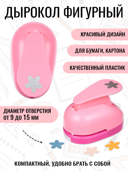 Диаметр отверстия дырокола 9-15 мм! Хотите вдохновить свои творческие способности и создать красивые и уникальные изделия своими руками? Наш дырокол фигурных для творчества для рукоделия - это идеальный инструмент для Вас и творчества ребенка! Фигурный дырокол - это инструмент для рукоделия, который позволит быстро и легко создавать различные фигуры и цветы из бумаги, картона, фоамирана и других материалов. Он идеально подходит для творчества, скрапбукинга, аппликаций и создания украшений. У нас большая линейка разнообразных фигурных дыроколов, такие как сердце, круг, звезда, бабочка, снежинка и другие. Они могут использоваться для создания маленьких декоративных элементов и украшений, которые могут быть использованы для украшения картона, скрапбукинга, поделок и других изделий. Каждый фигурный дырокол имеет одно отверстие, что делает его компактным и удобным для хранения. Они также обеспечивают четкие и ровные края, что делает ваши творческие проекты еще более профессиональными. Наш фигурный дырокол - это мощный инструмент для рукоделия, который подходит для всех уровней мастерства и возрастов. Он идеально подходит для домашнего использования и обеспечивает множество возможностей для творчества. Не упустите возможность приобрести наш набор дыроколов фигурных для творчества для рукоделия, который станет незаменимым товаром для ваших творческих проектов. Он обеспечит четкие и красивые края на ваших изделиях, что сделает их еще более привлекательными и профессиональными.