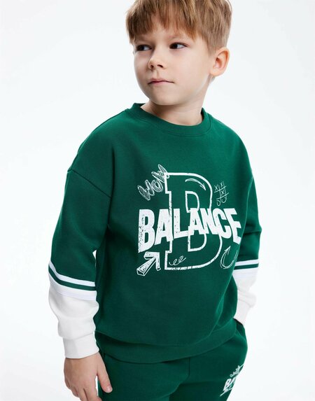 Стильный оверсайз-свитшот для мальчика с акцентной тесьмой и колор-блок вставками на рукавах. Контраст зелёного и молочного в сочетании с объёмным принтом спереди создаёт классную уличную атмосферу. Изделие изготовлено из мягкой скубы, которая дарит приятные прикосновения. Яркий дизайн модели позволит создавать крутые образы на любой случай. Детали: свободный крой oversize, круглый вырез горловины, длинные рукава со спущенной линией плеча, тесьма, цветные вставки на рукавах, манжеты и низ из рельефной трикотажной резинки, принт спереди. Цвет товара может незначительно отличаться от реального цвета из-за особенностей вашего экрана. Гарантийный срок товара 30 дней.