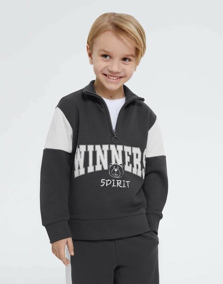 Тёмно-серый свитшот из френч-терри с модным воротником-стойкой на молнии — отличное дополнение гардероба вашего мальчика! Модель украшена принтом спереди и контрастными вставками на рукавах. Свободный крой дарит простор для движений. Сочетайте с джоггерами из детской коллекции Gloria Jeans! Детали: свободный крой, воротник-стойка на молнии, спущенная линия плеч, длинные рукава, эластичные манжеты и низ в рубчик. Цвет товара может незначительно отличаться от реального цвета из-за особенностей вашего экрана. Гарантийный срок товара 30 дней.