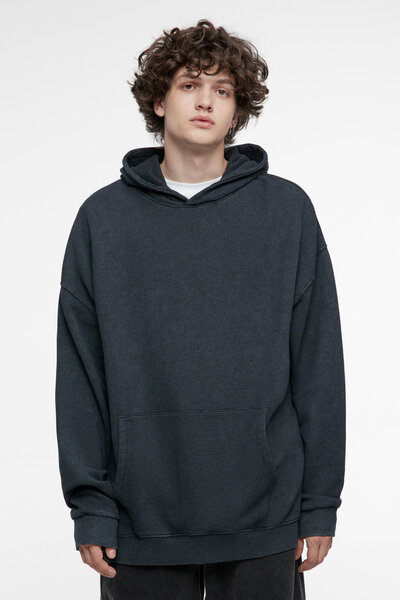 - Мужская худи свободного кроя oversize из мягкой, теплой хлопковой ткани с начесом - Объемный несъемный капюшон без завязок. Большой накладной карман-кенгуру спереди - Длинные свободные рукава с широкими манжетами в рубчик и спущенной линией плеча. Нижний край на широкой резинке в рубчик - Фиолетовая / черная толстовка с состаренным эффектом - Суперудобная и универсальная хлопковая оверсайз-толстовка с капюшоном и трендовым вареным эффектом для прогулок, занятий спортом на свежем воздухе и поездок за город. Сочетай ее со своими любимыми брюками, джинсами или шортами и создавай самые комфортные расслабленные аутфиты в актуальном стиле гранж на каждый день - Благодаря мягкой хлопковой ткани с утеплением худи идеально подойдет на холодное время года, а также в качестве уютной и теплой домашней одежды - Размер на модели: L