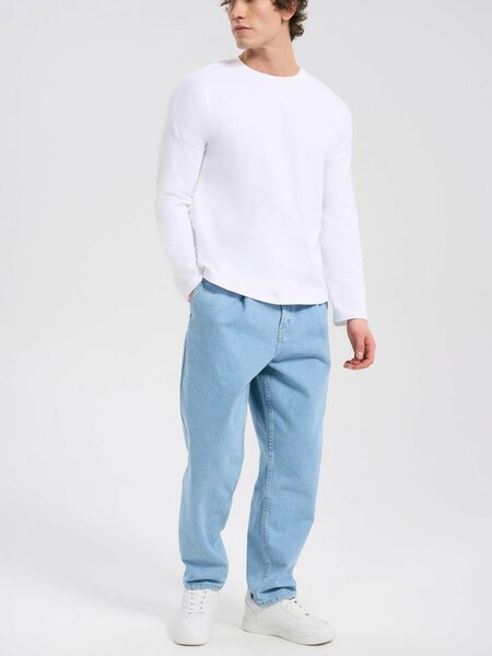 Мужские джинсы бананы твое с защипами в голубом цвете – это настоящая модная классика. Они сделаны из легкого 100% хлопка, который хорошо пропускает воздух, но большемерят. Свободный крой и немного зауженные к низу штанины обеспечивают удобство во время движения, в отличие от обтягивающих узких моделей slim с высокой посадкой, стрейч skinny в обтяжку и дудочки с низкой талией. Джинсы имеют накладные и прорезные карманы и среднюю посадку на талии. Укороченная вареная модель бананки хорошо смотрится на любой комплекции тела в сравнении с другими моделями – чинос прямого кроя, с резинкой внизу, слоуч с завышенной талией, карго, мешковатые оверсайз пирамиды, сигареты, обтягивающие бойфренды, клеш от бедра или от колена с высокой талией, широкие и расклешенные к низу, прямые джоггеры с манжетами и на резинке, завышенные облегающие скинни, слим с заниженной талией, трубы прямого покроя, клеш с разрезами, вариантами прямого кроя, с мотней или низкой талией. Если ты ищешь повседневную базовую модель, то эти короткие джинсы варенки легко заменят варианты с нашивками, принтом, вставками, дырками на коленях, разрезами по бокам, бахромой, вышивкой, разрезами внизу, лампасами, дырявые, потертые, рваные, со штанинами разного цвета, порванные. Такую классическую тонкую модель можно носить в любой сезон под пиджак или толстовку, в отличие теплых аналогов с начесом. Страна производства – Туркмения.