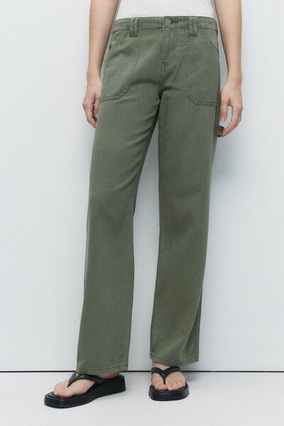 - Трендовые широкие джинсы карпентер прямого кроя из качественного, легкого и очень мягкого 100% хлопкового денима - Низкая посадка, подчеркивающая фигуру и акцентирующая внимание на талии - Два накладных кармана по бокам и два накладных кармана сзади - Специальная петля для молотка на левой штанине - Шлевки для ремня, застежка на молнию и пуговицу - Металлические заклепки на карманах спереди - Однотонные оливково-зеленые / бежевые джинсы carpenter jeans - Ультратрендовые джинсы с петлей и карманами на низкой посадке для расслабленных повседневных и уличных луков в рабочем, плотницком стиле или в бессмертном стиле хип-хоп - Сочетай их со своими самыми удобными топами, футболками или рубашками и создавай яркие, запоминающиеся всесезонные аутфиты - Свободные джинсы с большими накладными карманами в стиле карго для аутфитов, которые точно будут в тренде еще не один сезон - Параметры модели: рост 173, бюст 80, талия 61, бедра 86 - Размер на модели: S