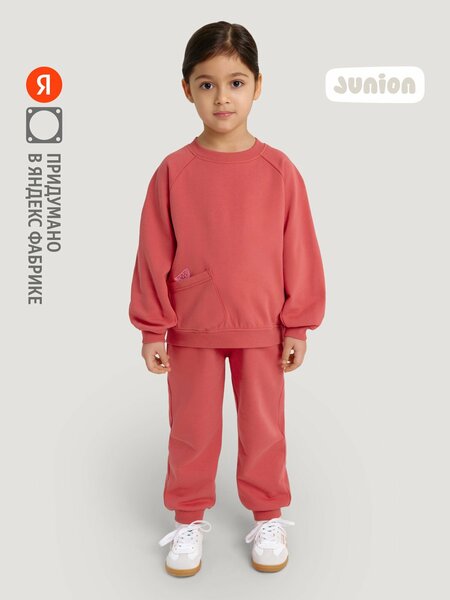 Junion Wear — это бренд одежды для детей, придуманный в Яндексе настоящими родителями. Джоггеры Junion Wear подходят для девочек от 1,5 до 6 лет. Детские брюки сделаны из петельчатого футера без начёса — это практичный материал, гладкий с лицевой стороны и мягкий внутри. В таких джоггерах будет комфортно и не жарко. Базовый крой джоггеров не стесняет движений и не отвлекает от активностей. Брюки надёжно держатся на поясе благодаря эластичной резинке. Дополнительно отрегулировать посадку можно с помощью шнурка. Резинка вокруг щиколотки надёжно сидит на ноге и сохраняет форму даже после множества стирок. Аккуратные и надёжные швы делают джоггеры удобными в носке, а по бокам есть практичные карманы. За брюками просто ухаживать, следуя знакам на этикетке. Благодаря универсальному оттенку джоггеры легко сочетаются с разной одеждой — как базовой, так и выразительной. Дополнить комплект можно худи, свитшотом или лонгсливом из коллекции Junion Wear.