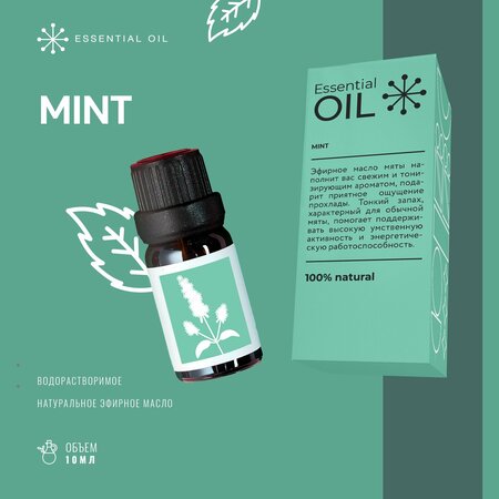 Эфирное масло Мяты Essential oil: натуральный аромат для релаксации Объем и состав Эфирное масло Мяты Essential oil имеет объем 10 мл, что позволяет использовать его длительное время. В составе 100% натуральное эфирное масло мяты, которое обеспечивает насыщенный и свежий аромат. Аромат и применение Аромат эфирного масла Мяты Essential oil напоминает о свежести и прохладе, что способствует расслаблению и успокоению. Масло можно использовать для ароматерапии, добавляя его в диффузоры, аромалампы или просто нанося на кожу. Польза для здоровья Натуральное эфирное масло Мяты Essential oil обладает рядом полезных свойств для здоровья. Оно помогает улучшить качество сна, снимает стресс и напряжение, способствует улучшению кровообращения и общего самочувствия. Выбирая эфирное масло Мяты Essential oil, вы получаете натуральный продукт высокого качества, который поможет вам расслабиться и улучшить свое здоровье.