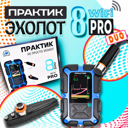 Эхолот Практик 8 PRO Wi-Fi DUO для летней и зимней рыбалки, в комплекте 2 датчика