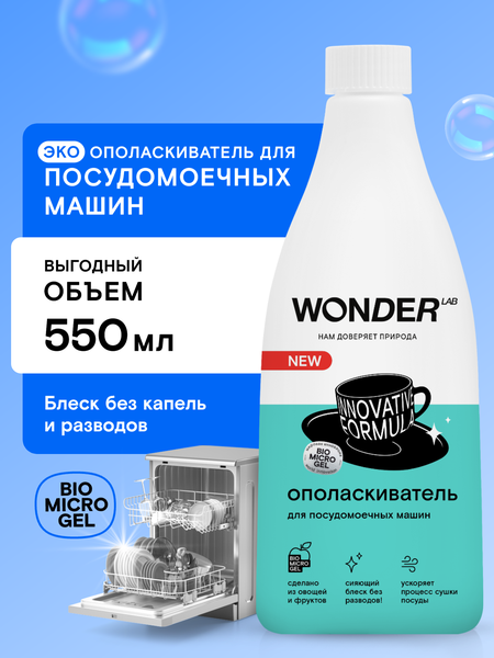 Эко ополаскиватель для посудомоечных машин (ПММ) WONDER LAB, без запаха, 550 мл