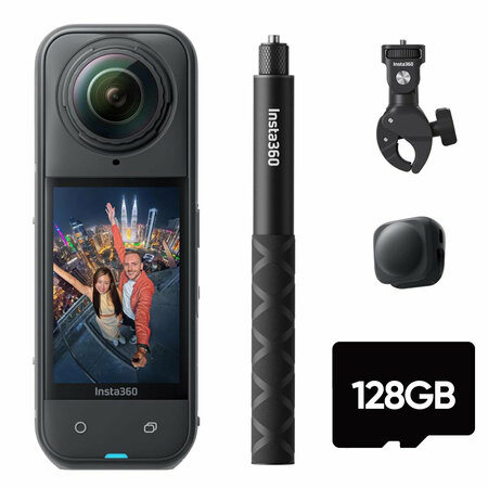 Insta360 X5 X5 Motorcycle Multiview Bundle includes: 1x Insta360 X5 Standard Bundle 1x 114cm Invisible Selfie Stick, 1x Lens Cap, 1x 128GB microSD Card. 1x Heavy Duty Clamp. Основные особенности: Для создателей контента и фотографов Включая запасные части для мотоциклов 8K30 / 5.7K30 360° Чистая запись видео Установка после 360°, более длительное время работы Прочный дизайн, съемный объектив защиты Управление жестами, режим с двумя / одним объективом Время пули, задержка, InstaFrame Активный HDR, циклическая запись, режим Me 49 'Водонепроницаемость, 72 Мп фото Функция невидимого селфи. Используйте мощную камеру Insta360 X5 360° 8K, чтобы обновить производство до 360 ° видео кинокласса, которая может снимать HDR 8K30 360° в режиме с двумя объективами или одним объективом с помощью технологии с низким светом, улучшенной PureVideo, все в портативной мобильной камере. X5 предлагает готовый к действию дизайн с программным обеспечением на основе искусственного интеллекта, которое интуитивно создает динамический контент в любой среде, а также захват « времени пули», битрейт 180 Мбит / с, сдвиг во времени, запись цикла и отсроченную съемку. X5 также имеет обновленный прочный дизайн с водонепроницаемостью до 49 дюймов и оснащен обновленным аккумулятором емкостью 2400 мАч, который продлевает время работы до 88 минут.