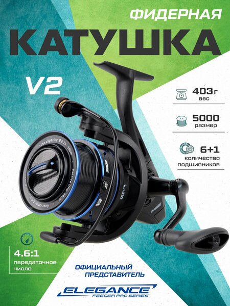 ELEGANCE FEEDER PRO V2 это современная и очень надежная катушка высокого класса с легким и прочным корпусом. Катушка разработана в соответствии с требованиями профессиональных рыболовов и продвинутых любителей. Имеет следующие характеристики: - надежный кулисный механизм; - модель оснащена комплектом подшипников 6+1; - передаточное отношение 4,6:1; - имеет широкую низкопрофильную шпулю из алюминиевого сплава; - ввинчивающуюся ручку; - толстую и прочную полую дужку лесоукладывателя; - ролик лесоукладывателя с титановым покрытием и системой Anti-Twist; - 2 круглых металлических подпружиненных клипсы; - точную регулировку переднефрикционного тормоза с тонкой настройкой; - аккуратную и удобную металлическую ручку с облегченным прорезиненным кнобом; - пластиковую подшпульную "юбку", препятствующую попаданию лески под шпулю и запутывание за шток; Данная серия катушек включает 3 типоразмера: 4500 - рекомедуется для фидерных удилищ класса лайт и медиум с весами кормушек до 70 г 5000 - рекомедуется для фидерных удилищ класса хэви с весами кормушек 70-100 г 5500 - рекомедуется для фидерных удилищ класса хэви/экстра хэви с весами кормушек 80-120 г