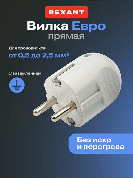 Электрическая евровилка прямая Rexant предназначается для подключений приборов к общей сети розеток. Может использоваться в жилых, общественных и административных помещениях с целью присоединения/разъединения к сети бытовых электроприборов. Дизайн конструкции специально спроектирован с расчетом для удобства во время использования в труднодоступных ограниченных пространствах (например, за шкафом или диваном). Вилка выполнена в классическом белом цвете, благодаря чему вписывается в любой интерьер Вашего дома. Служит оптимальной заменой старой, вышедшей из строя вилки. Изделие отличается улучшенным качеством литья, правильной поляризацией и электроизоляцией, помимо этого, основной корпус изделия выполнен из высококачественного пластика. Контакты выполнены из латуни, в связи с чем во время эксплуатации вилка надежна и долговечна. Основные характеристики: Номинальный ток: 16 А; Напряжение: 220-250 В; Сечение проводников: от 0,5 до 2,5 мм².