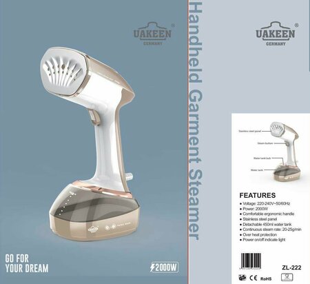 Электрический ручной отпариватель UAKEEN ZL-222: мощный и удобный Мощность и производительность UAKEEN ZL-222 оснащен мощным двигателем на 2000 Вт, что обеспечивает высокую производительность и быстрое отпаривание. Максимальная подача пара составляет 25 г/мин, что позволяет быстро и эффективно разглаживать складки на одежде. Компактный и удобный Отпариватель UAKEEN ZL-222 имеет ручную конструкцию, что делает его удобным для использования в любых условиях. Благодаря компактным размерам и весу всего 1,2 кг, его легко переносить и хранить. Резервуар для воды и время работы Объем резервуара для воды составляет 0,45 л, что обеспечивает продолжительное время работы на одном заряде. Время работы отпаривателя составляет 30 минут, что позволяет справиться с большим количеством одежды без необходимости частой доливки воды. Насадки и аксессуары В комплекте с отпаривателем идет насадка-щетка, которая поможет вам быстро и легко очистить одежду от шерсти, волос и других загрязнений. Выбирая электрический ручной отпариватель UAKEEN ZL-222, вы получаете мощный, удобный и надежный инструмент для быстрого и эффективного ухода за вашей одеждой.