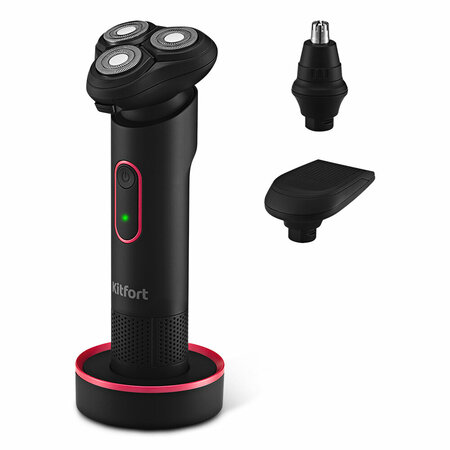 Электробритва Kitfort KT-3164 — это прибор для бритья, стрижки волос в носу и ушах, а также для подравнивания усов или бороды. Корпус устройства компактен, что в сочетании с длительным временем работы позволяет брать его с собой! Тип данной бритвы – роторный. Во время работы лезвия, которые закрыты металлическими сетками, синхронно вращаются. Волоски, попадая в перфорацию сеток, срезаются вращающимися лезвиями. Роторные бритвы – отличный выбор для качественного бритья! У бритвы КТ-3164 в комплекте есть насадка для носа, которой также можно удалять волосы из ушей и насадка-триммер для бритья и подравнивания волос на лице. После каждого сеанса бритья очищайте лезвия, сетки и насадки щёточкой для чистки. Вы также можете дополнительно продуть лезвия и насадки. Чистку нужно производить после выключения устройства. Зарядить аккумулятор можно с помощью базы для зарядки и шнура питания USB, идущих в комплекте с устройством. Храните бритву в сухом и прохладном месте, недоступном для детей.