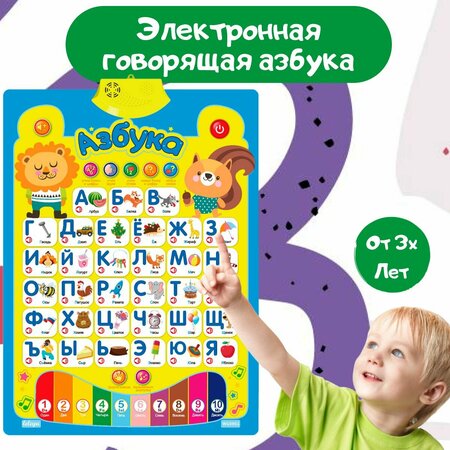 Говорящий алфавит плакат поможет развить память, внимательность, усидчивость и интерес ребёнка к учёбе. Яркие картинки сделают процесс обучения веселее. В режиме "Викторина" ребёнок проверит полученные знания и ответит на вопросы. С обучающим плакатом ребёнок освоит: