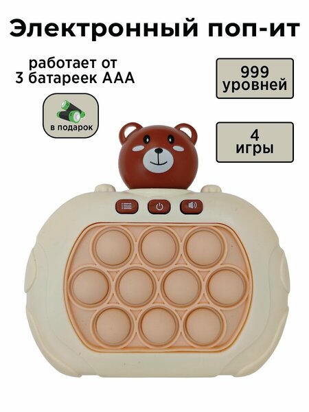 Ищете интересную и развивающую игрушку для вашего малыша? Представляем вашему вниманию электронный поп ит на русском языке в форме милого медведя. Эта инновационная игрушка предназначена для детей младшего возраста и легко завоевывает их сердца благодаря простоте и увлекательности использования. Электронный поп ит сочетает в себе классическую механику простой сенсорной игрушки и современные технологии. Теперь ваш ребенок сможет не только нажимать на разноцветные кнопки, но и наслаждаться различными звуковыми эффектами и мелодиями, что делает игровое время еще увлекательнее и полезнее. Яркий дизайн в форме медведя привлечет внимание малыша и подарит ему множество положительных эмоций. Электронный поп ит на русском языке – это отличное решение для родителей, которые хотят предоставить своим детям качественную и безопасную игрушку. Изготовлен из прочных и экологически чистых материалов, он проработан до мелочей, чтобы гарантировать безопасность ребенка во время игры. Поп ит для малышей станет незаменимым спутником во время путешествий, прогулок или просто в домашней обстановке. Компактные размеры позволяют брать его с собой куда угодно, а встроенные звуки и мелодии подарят вашему малышу много часов радостных моментов. Особенности: - Развивающая игрушка для малышей - Электронные эффекты и мелодии на русском языке - Улучшает мелкую моторику и сенсорику - Сделан из безопасных материалов - Компактный размер и удобство в использовании Введите своего малыша в мир увлекательных игр и полезного обучения с помощью этого замечательного электронного поп ит в форме медведя на русском языке. Позвольте ему наслаждаться яркими звуками и весело проводить время, получая новый опыт и знания! Пусть каждый щелчок приносит радость вашему ребенку.