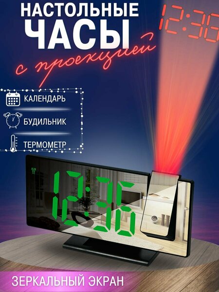 Светодиодный Будильник с цифровой проекцией, электронный будильник с проектором времени, автоматическая яркость, прикроватные часы для спальни. Описание: Модель изделия: DS-3618LP Размер: 18,5*9,5*4,2 см Материал: АБС-пластик Вес нетто продукта: 148,4 г 2 шт. AA батареи. Функция s: функция часов, функция периода, функция будильника, функция температуры, автоматическая полуяркая функция, функция ЖК-проекционных часов Характеристики: 1)Четырехскоростная регулировка яркости: Слегка нажмите верхнюю кнопку для регулировки яркости 2)Автоматическая регулировка яркости и защиты глаз: Включите автоматический полуяркий режим, и яркость автоматически тускнеет с 18:00 до 5:59 каждый день, но это только автоматический интервал переменной, его можно настраивать 3)Светодиодный проектор времени: Проекция ясна и угол проекции может быть отрегулирован; Нажмите клавишу проекции для включения или выключения; 4)Функция повтора: Нажмите кнопку после звонка, она снова зазвонит через 5 минут; Работает от сети USB кабель (в комплекте)! Батарейки для сохранения данных о правильности времени и информация о будильниках!