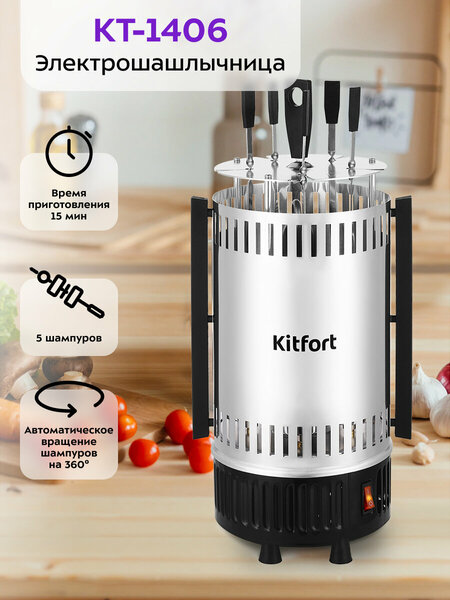Достоинства:Пришло хорошо упакованным. Занимает мало места. Шампуры в наборе. Работает отлично Недостатки:Для себя не выявил Комментарий:Электрошашлычница Kitfort KT-1406 меня приятно удивила своим качеством и удобством в использовании. Мясо готовится равномерно, получается сочным и нежным, что делает процесс приготовления шашлыков на кухне настоящим удовольствием. Компактный размер устройства позволяет легко хранить его даже на маленькой кухне, а легкость в уходе экономит время на уборку. Однако стоит учесть, что одновременно можно готовить ограниченное количество мяса, что может быть проблемой при большом количестве гостей. В целом, это отличный выбор для любителей домашних шашлыков!