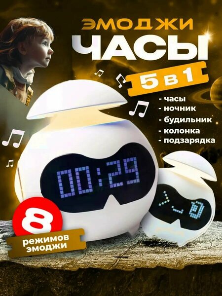 Настольные умные часы-будильники с ночником и Bluetooth колонкой, друзья, соверешенно точно не назовешь этот будильник обычным? В этот светильник встроена Bluetooth колонка и ночник, что подарят вам и вашим детям настоящие эмоции, которых не хватает в доме! Данный будильник станет креативным декором для всех комнат, в том числе для детской комнаты! Пять режимов цвета ночника подарят вам космический опыт в любой комнате вашего дома. Благодаря подсветке различной интенсивности, вы сможете выбрать подходящий режим освещения для создания рамантичной обстановки в комнате. Но преимущества этого устройства не ограничиваются лишь светом. Настольные часы станут отличным как перед сном, так и утром, создавая атмосферу уюта и спокойствия. Встроенные настольные электронные часы добавляют функциональность, позволяя вам легко просматривать время в удобном формате, что делает его идеальным компаньоном у кровати. Дополнительно, встроенная Bluetooth колонка позволяет вам наслаждаться любимой музыкой прямо из вашего телефона, без лишних проводов и сложных настроек. Просто подключите телефон к колонке и окунитесь в атмосферу своих любимых мелодий. Также чтобы послушать свои любимые песни, сказки или подарить веселье своим детям. Детский ночник - это безупречное сочетание удобства, практичности и стиля. Его современный дизайн и многофункциональные возможности делают его незаменимым аксессуаром для вашей спальни или гостиной. Позвольте ему не только освещать ваш путь в темноте, но и сопровождать вас приятной музыкой и точным отображением времени. Погрузитесь в мир комфорта, элегантности и функциональности с этим инновационным устройством, которое станет вашим надежным спутником в повседневной жизни. Смарт ночник, умный ночник
