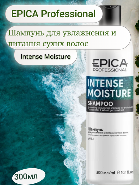 Шампунь для увлажнения и питания сухих волос EPICA Professional Intense Moisture, 300 мл Увлажняющий шампунь для сухих волос EPICA Professional Intense Moisture с маслом какао и экстрактом зародышей пшеницы предназначен для очищения, увлажнения и питания сухих волос, без утяжеления. Смягчение и питание: масло какао и экстракт зародышей пшеницы в составе шампуня смягчают, питают и удерживают влагу в структуре волоса, делая волосы мягкими и шелковистыми. Повышение упругости и блеска: шампунь повышает упругость волос, возвращает естественный блеск и делает волосы мягкими и шелковистыми. Ежедневное применение: шампунь подходит для ежедневного применения, обеспечивая увлажнение и питание сухих волос. УФ-защита: шампунь содержит УФ-защиту, которая помогает защитить волосы от негативного воздействия окружающей среды. Состав: aqua, cocamidopropyl betaine, sodium laureth sulfate, lauryl glucoside, glycerin, coco-glucoside (and) glyceryl oleate, sodium chloride, peg-75 lanolin, citric acid, polyquaternium-10, theobroma cacao seed butter, triticum vulgare germ oil, acrylamidopropyltrimonium chloride/acrylamide copolymer, disodium edta, benzoic acid, sorbic acid, dehydroacetic acid, benzyl alcohol, parfum. Применение: нанесите шампунь на влажные волосы, вспеньте и оставьте на 1-2 минуты, затем тщательно смойте. При необходимости повторите. Не содержит парабенов и сульфатов. Объем: 300 мл. EPICA Professional – российский бренд, который зарекомендовал себя на рынке профессиональной косметики для волос.