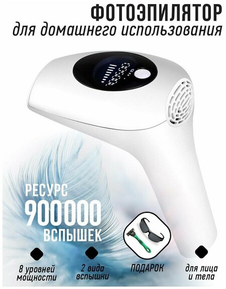 Фотопилятор делает кожу женщины гладкой. По сравнению с другими устройствами, наш фотоэпилятор имеет несколько достоинств: Отсутствие раздражения. Выдергивание волос или их удаление с помощью бритвенного станка часто приводят к образованию покраснений, появлению раздражения и зуда. Не редко из-за этого образуются прыщи. При использовании фотоэпилятора, у вас не будет таких проблем. Интенсивный импульсный свет проникает в глубокие слои кожи и поглощается меланином в волосяных фолликулах. Меланин нагревается и разрушает клетки ростковой зоны волоса, таким образом волосы удаляются безопасно и без какого-либо вреда для кожи. В основу модели заложены: высокая мощность вспышки. Вы можете самостоятельно регулировать мощность воздей ствия, выбрав один из 8 режимов, что сделает процедуру комфортной и эффективной для любого типа кожи и чувствительности; безопасность. В комплекте находятся специальные очки, не пропускающие УФ-лучи. Встроенный датчик контакта с кожей предотвратит произвольные вспышки до момента готовности к процедуре; удобство и простота использования. Небольшой размер эпилятора позволяет с легкостью взять его с собой, положив в сумочку.