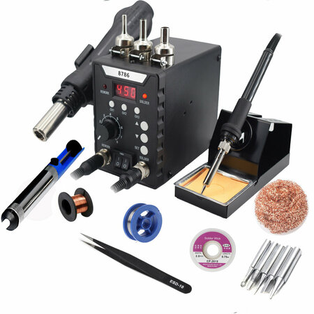 Eruntop 8786 Набор C 2 в 1 Многофункциональная сварочная станция, паяльник, термофен с 3 температурными каналами памяти