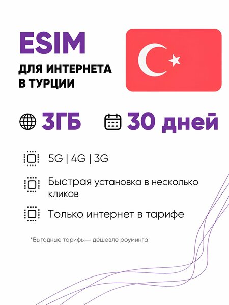ESIM для интернета в Турции 3 ГБ на 30 дней. Виртуальная сим-карта для Турции