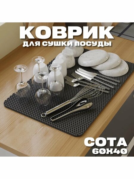 эва-коврик для сушки посуды, защищает столешницу и кухонные поверхности от влаги, легко очищается, не впитывает запахи и влагу, предотвращает распространение грязи и влаги, долговечный и устойчивый к износу, приятный на ощупь, подходит для использования в раковине или рядом с ней; производится в россии, доступен в разных цветах и размерах