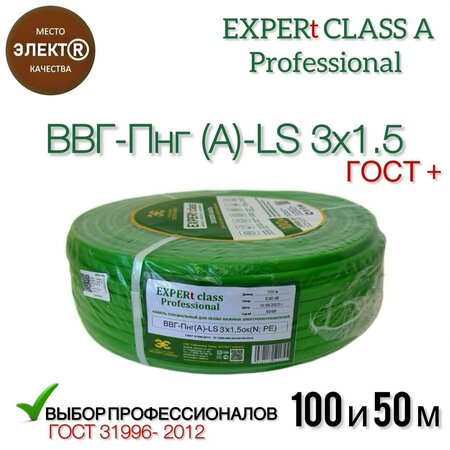EXPERt class A Силовой кабель ВВГ-Пнг(A)-LS 3 x 1.5 мм, 100 м, 11600г Для ЭлектRо