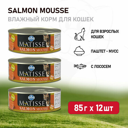 Farmina Matisse Salmon Mousse влажный корм для взрослых кошек мусс с лососем - 85 г (12 шт в уп)