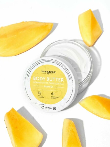 Баттер (суфле 80 %) "Манго" обладает незабываемым вкуснющим ароматом Спелого манго. Аромат возвращает в лето и тонко остается на коже. Сбалансированная формула из ценных масел -ши, кокос, олива, арагана, сладкий миндаль надолго избавит вас от сухости и стянутости. Д-пантенол в формуле баттера устранит трещинки и микротрещинки, восстановит естественный липидный баланс, успокоит обветренную и покрасневшую кожу. Витамин Е в баттере благотворно воздействует на кожу в качестве антиоксиданта, препятствует преждевременному старению кожи под действием УФ-излучения и других свободных радикалов. В составе баттера 80% органического масла ШИ с Мали.