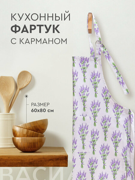 Фартук кухонный Василиса 60х80 см, с карманом, Рогожка, Букет лаванды