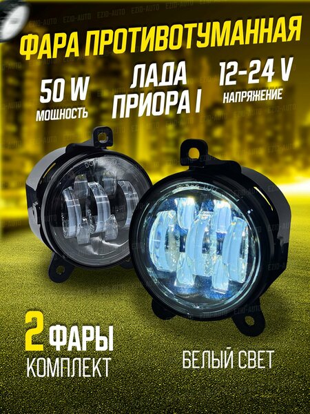 Противотуманные светодиодные фары, комплект 2 шт. Габариты фар идеально подходят для родных пазов противотуманки, крепления обеспечивают лёгкую установку, не нужно ехать в сервис. Штатное подключение за несколько минут. Пыле-влагозащита - IP67, полностью водонепроницаемы. Материал - литой алюминий. LED элементов в одной фаре - 7. Чёткая свето-теневая граница туманки засчёт линзованных диодов. Мощность - 25W. Напряжение - 9-85 V. Цветовая температура - 5500К, холодный белый свет. Срок работы - 30000 часов. Один режим работы - белый. светодиодные фары автомобильные противотуманные led лампы дхо, диодная фара для Лада (Lada) Приора 1.