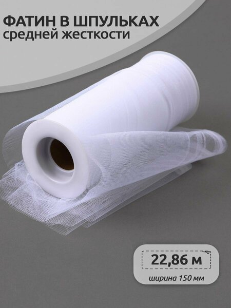 Фатин в шпульках имеет очень широкое применение. Этот воздушный и упругий материал изготавливается из тонкой полиэстерной нити высокой прочности. Благодаря сетчатой структуре он не загрязняется, сохраняет форму даже после намокания и быстро высыхает. Фатин похож на тюль и другие сетчатые ткани, но имеет более равномерную и гладкую структуру, устойчив к сминанию, бывает матовый или блестящий. Торжественный вид фатина дарит ощущение романтичности и праздника. Его можно применять в различных видах рукоделия, главное подключить фантазию. Из фатина изготавливают искусственные цветы, им украшают предметы интерьера, из этого материала шьют праздничные наряды, пышные банты, одежду для кукол, головные уборы, сценические костюмы, подъюбники для юбок и платьев, повседневные взрослые и детские юбки, помпоны для украшения помещений, свадебные платья, фату, заколки, бижутерию. Ширина рулона 15см, длина 25 ярдов -22,8м. Фатин хорошо держит форму, при этом не колется и комфортен в применении.