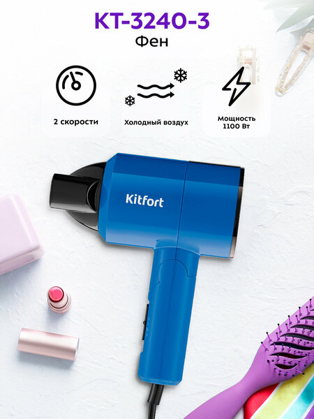 С помощью фена Kitfort КТ-З240 вы сможете быстро высушить волосы и сделать красивую стойкую укладку. Фен выдает направленный поток воздуха, поэтому волосы с ним сушить просто и удобно.