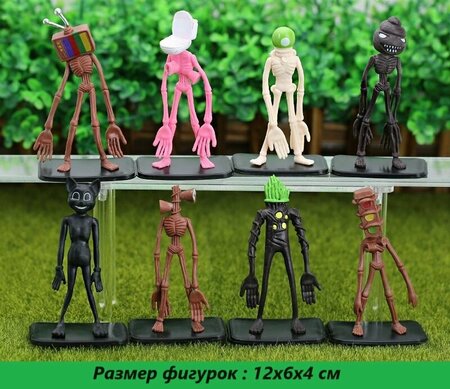 Сиреноголовый - один из самых популярных детских персонажей на сегодняшний день! О нем говорят почти все дети и даже некоторые взрослые . Персонаж компьютерных хорроров и популярных блогеров. Бестселлер Ютуба! Представляем Вашему вниманию набор из 8-ми фигурок Сиреноголовых : Фонареголовый, Светофороголовый , Картошкоголовый , Телевизороголовый , Кэртун Кэт и другие). Фигурки сиреноголовых изготовлены из качественного ПВХ-материала, не ломаются и прекрасно прорисованы. Не боятся изнурительных игр и войн. Высота фигурок 12 см. Такой подарок вызовет восторг у любого ребенка! Товар сертифицирован и абсолютно безопасен для вашего ребенка!