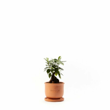 Качественный керамический горшок с надписью "ROOTS", придающий дополнительный стиль растению.