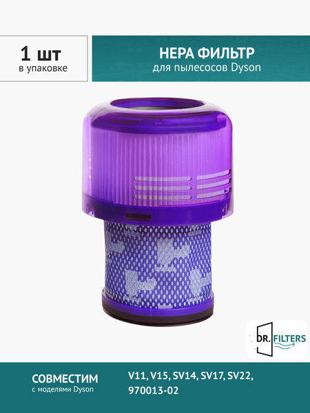 HEPA-фильтры это высокоэффективные фильтры, главная цель которых удалять из воздуха мелкодисперсные частицы, они задерживают даже незначительные пылинки, которые попадают обратно в помещение во время работы пылесоса. Такие фильтры обеспечивают эффективную очистку воздуха, которым Вы дышите, уменьшая попадание пыли, пыльцы, продуктов жизнедеятельности домашних животных и других аллергенов в воздух. Фильтр для пылесоса Dyson изготовлен из высококачественных материалов, его можно промывать и использовать повторно. Рекомендуется промывать фильтры один раз в месяц и менять каждые 2-3 месяца. Регулярная замена фильтров помогает поддерживать максимальную производительность Вашего пылесоса. Совместимость с моделью: Dyson V11, V15, SV14, SV17, SV22, 970013-02 Dyson V11 Absolute (SV14) Dyson V11 Animal + Plus Dyson V11 Absolute Dyson V11 Absolute Pro Dyson V11 Extra (SV17) Dyson V15 Detect absolute (SV22)