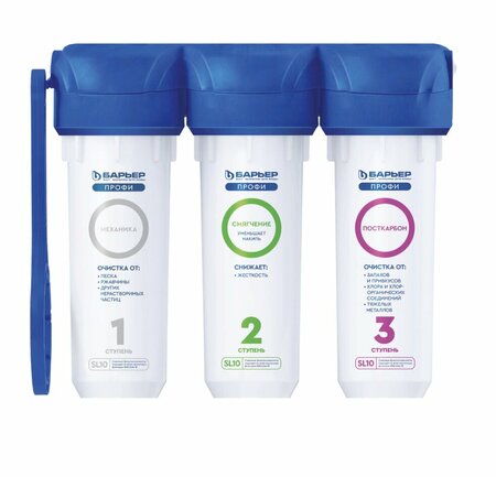 Вместительный кувшин для всей семьи в сочном оттенке "зеленое яблоко." Отлично впишется на любую кухню. Удобный клапан на крышке позволяет наполнить кувшин одной рукой. Механический индикатор подскажет, когда придет время менять кассету. В комплекте с кувшином кассета барьер Стандарт, которая защитит от хлора, тяжелых металлов и других вредных примесей. Резьбовое крепление кассеты исключает попадание неотфильтрованной воды в очищенную. Кувшин с механическим индикатором можно мыть в посудомоечной машине. Одна кассета барьер способна заменить несколько сотен пластиковых бутылок. По окончании ресурса кассету можно сдать на переработку. Комплектация Водоочиститель в сборе с комплектом фильтроэлементов, кран для чистой воды с прокладками, шайбами и гайкой, 2 соединительных пластиковых трубки, пластиковый ключ для замены фильтроэлементов, фитинг на кран для чистой воды, 2 угловых фитинга, шаровой вентиль для подключения к водопроводу, крепежная пластина для монтажа фильтра, 2 шурупа с дюбелями для подключения водоочистителя к стене, пластиковый крючок для подвеса ключа. Характеристики Основные Число степеней очистки 3 Особенности фильтра Подключение к водопроводу Производительность, л/час 12 Ресурс кассеты фильтра, л 10000 Эффект: Очистка и минерализация воды, Очистка от хлора, Смягчение воды, Тонкая очистка, Удаление железа Общие Бренд Барьер Серии Профи Страна-изготовитель Россия Размеры Типоразмер катриджа 10 SL Вес товара, г 5000 Дополнительные Тип Фильтр встраиваемый под мойку Артикул Н122Р00