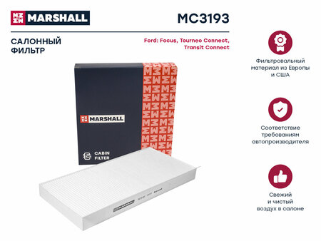 Фильтр салонный Ford Focus I 98- Tourneo Connect I 02- Transit Connect I 02- () Marshall MC3193