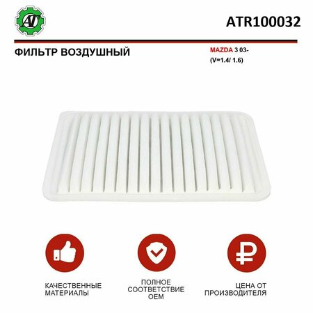 Фильтр воздушный AT — это высококачественный элемент воздухоочистителя, который обеспечит надежную защиту вашего двигателя от вредных частиц и пыли. Он производится на современном автоматизированном оборудовании с использованием передовых технологий, что обеспечивает высокую точность размеров и полное соответствие требованиям производителей. Деталь полностью соответствует штатной. Сменный картридж воздушного фильтра AT предназначен для автомобилей MAZDA 3 03- (V=1.4/1.6). Для того чтобы узнать, подходит ли этот фильтр для вашего автомобиля, необходимо проверить соответствие его оригинального номера (OEM) с номерами, указанными в описании товара: AP113/3, ATR100032, KA0032, LX1921, ZJ0113Z40, ZJ0113Z409. Для проверки совместимости запчасти с Вашим автомобилем можете прислать вопросом свой VIN-код (указан в свидетельстве о регистрации транспортного средства) и мы постараемся Вам помочь.