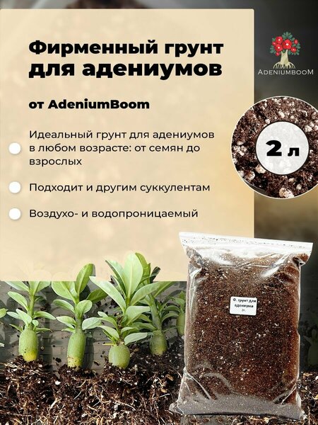 Фирменный грунт для адениума, 2л. /земля для адениума, грунт для суккулентов/AdeniumBoom
