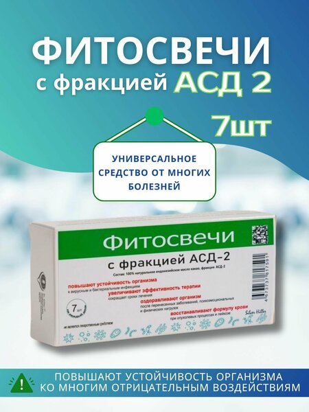 Фитосвечи с АСД фракцией-2 оказывают мощное противоопухолевое и антиканцерогенное действие, а также в значительной мере повышает устойчивость человеческого организма к различным вирусным, грибковым, бактериальным инфекциям и к воздействию вредного радиоактивного излучения. Препятствующий развитию и распространению злокачественных опухолей, активизирующий обменные процессы антисептик Дорогова также способствует быстрому и эффективному восстановлению повреждённых участков кожи и слизистых оболочек. Свечи рекомендуются при: