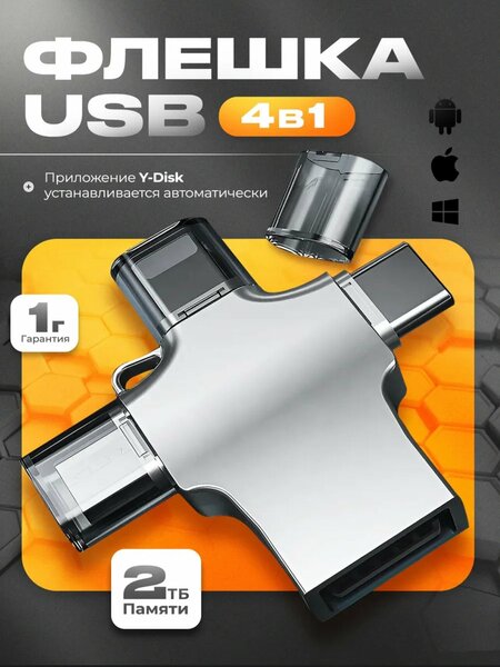 Металлическая флешка Flash card Y Disk 4 в 1 поддерживает все необходимые для воспроизведения форматы файлов, имеет 4 актуальных современных разъема (Lightning, Type-C, Micro USB, USB 3.0) Флешка для телефона iPhone начиная с iPhone 7 и выше моделей /iPad/Android/Айфон/Айпад/Андроид, то что нужно для увеличения памяти любого смартфона а так же использовать как карта памяти для айфона, для андроида, самсунг, сяоми, хонор, компьютер, ноутбук, квадрокоптер, дрон. Вы можете быть уверенными в том, что памяти хватит с запасом для любого устройства. Флешка для айфон поможет освободить место на вашем устройстве, без проблем перенести данные на любое другое устройство apple с лайтнинг разъёмом, или же на любой компьютер, благодаря второму выходу USB 3.0. Также при помощи приложения "Y Disk" ( Приложение скачивается автоматически при первом использовании Y-DISK бесплатное в AppStore). С Флешкой Вы всегда сможете быстро и безопасно обмениваться информацией с большинством современных устройств Iphone - ipad или Samsung переносить на Windows даже на iOS и обратно. Возможно запись фото и видео напрямую на флешку и просматривать с флеш накопителя любимые фильмы и сериалы в местах ограниченного или нестабильного интернета даже в самолете или поезде.