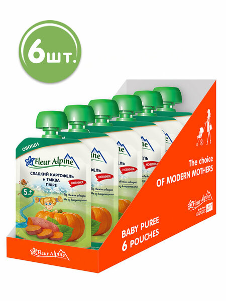 Пюре Fleur Alpine СЛАДКИЙ КАРТОФЕЛЬ И ТЫКВА идеально для овощного прикорма и предназначено для питания детей старше 5 месяцев: • Уникальный микс из свежих овощей – не из концентрата • Без добавления муки, крахмала и соли • Без добавления воды • В удобной пауч-упаковке • Органический продукт, произведен и сертифицирован в соответствии с Регламентом Европейского Союза № 2018/848 об органическом сельском хозяйстве • Производится в Испании При производстве пюре Fleur Alpine используются только отборные сорта овощей. Сладкий картофель (батат) богат бета-каротином, важным для зрения и иммунной системы. Тыква – «природный поливитамин» – полезна для сердца. Пюре Fleur Alpine СЛАДКИЙ КАРТОФЕЛЬ И ТЫКВА в мягкой упаковке имеет приятный сладковатый аромат, нежный натуральный вкус и в меру густую консистенцию. Готовое овощное пюре Fleur Alpine в пауче удобно брать с собой на прогулку или в поездку. ВАЖНАЯ ИНФОРМАЦИЯ: если упаковка вздута, не используйте продукт. Снимите крышку и уберите ее от малыша во избежание попадания в рот. Не оставляйте ребенка без присмотра во время кормления. Перед введением новых продуктов рекомендуем проконсультироваться с педиатром, который наблюдает малыша и знает все особенности его здоровья. Начинайте вводить детское пюре Fleur Alpine СЛАДКИЙ КАРТОФЕЛЬ И ТЫКВА с одной чайной ложки, постепенно увеличивая объем в соответствии с возрастом ребенка и рекомендациями педиатра. Перед употреблением поместите пауч в теплую воду или выдавите необходимое количество в тарелку, перемешайте и подогрейте. Не помещайте пауч в микроволновую печь и не разогревайте повторно. Состав: пюре из сладкого картофеля, пюре из тыквы На 100 г продукта: Энергетическая ценность – 317 кДж/76 ккал Белки – 1,2 г Углеводы – 13 г Пищевые волокна – 2,1 г Минеральные вещества: калий – 274 мг Возраст: С 5 месяцев Масса нетто: 90 г Срок годности: 15 месяцев Условия хранения: Закрытую упаковку хранить в сухом месте при температуре от 0°С до +25°С и относительной влажности не более 75%. После вскрытия хранить с закрытой крышкой в холодильнике не более 24 часов.