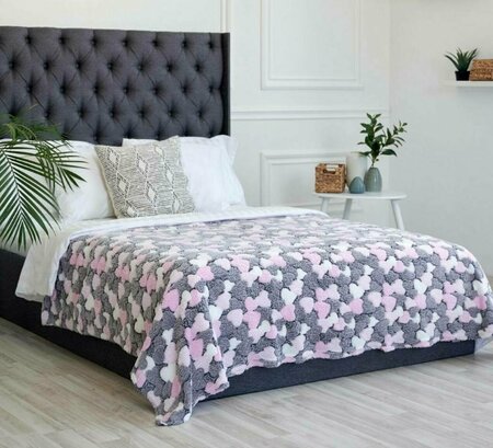 Флисовый 2 спальный плед с узором сердечко размером 180х200 / Покрывало на диван, кровать