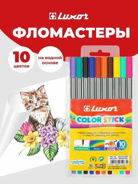 Набор фломастеров Luxor Color Stick – идеальный инструмент для творчества, подойдет детям и взрослым. Качественные маркеры для скетичнга, рисования и творчества для детей. Фломастеры Luxor " Color Stick " 10 цветов предлагают широкий выбор насыщенных и ярких оттенков для вашего творчества. Изготовлены из высококачественных материалов, безопасных для использования даже детьми. Они не содержат вредных веществ и соответствуют всем стандартам качества, что делает их идеальным выбором для семейного использования. Фломастеры для малышей имеют шестигранную форму корпуса, что позвояет им не скатываться со стола. Наконечники обладают высокой стойкостью и долговечностью. Они не деформируются при использовании и сохраняют свою форму даже при интенсивном творческом процессе, что обеспечивает долговечность фломастеров. Фломастеры предназначены специально для детей от 3 лет. Упакованы в прозрачный плотный пластиковый пенал, в котором их удобно хранить. Фломастеры на водной основе легко отстирываются с одежды и смываются с рук водой. Фломастеры Luxor представлены с безопасным вентилируемым колпачком, который легко снимается и надевается. Фломастеры Luxor " Color Stick " могут использоваться на различных типах бумаги, картоне, скетчбуках и других поверхностях. Они подходят для различных техник рисования, включая штриховку, заливку, тонирование и создание деталей. Доверьтесь качеству и функциональности Luxor " Color Stick " и откройте новые горизонты в своем творчестве!